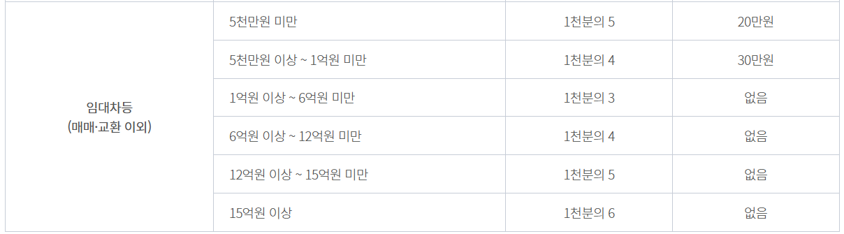 전세 계약 시 중개수수료율표