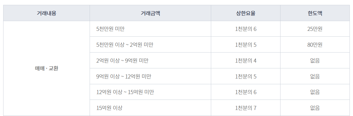 아파트 매매 시 중개수수료율표
