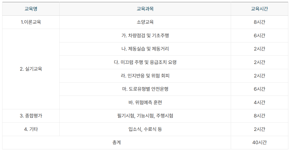 | 교통법규 준수 | 교육 신청 시 법규 위반 여부 심사 및 운전 기록 확인 절차 있음 |