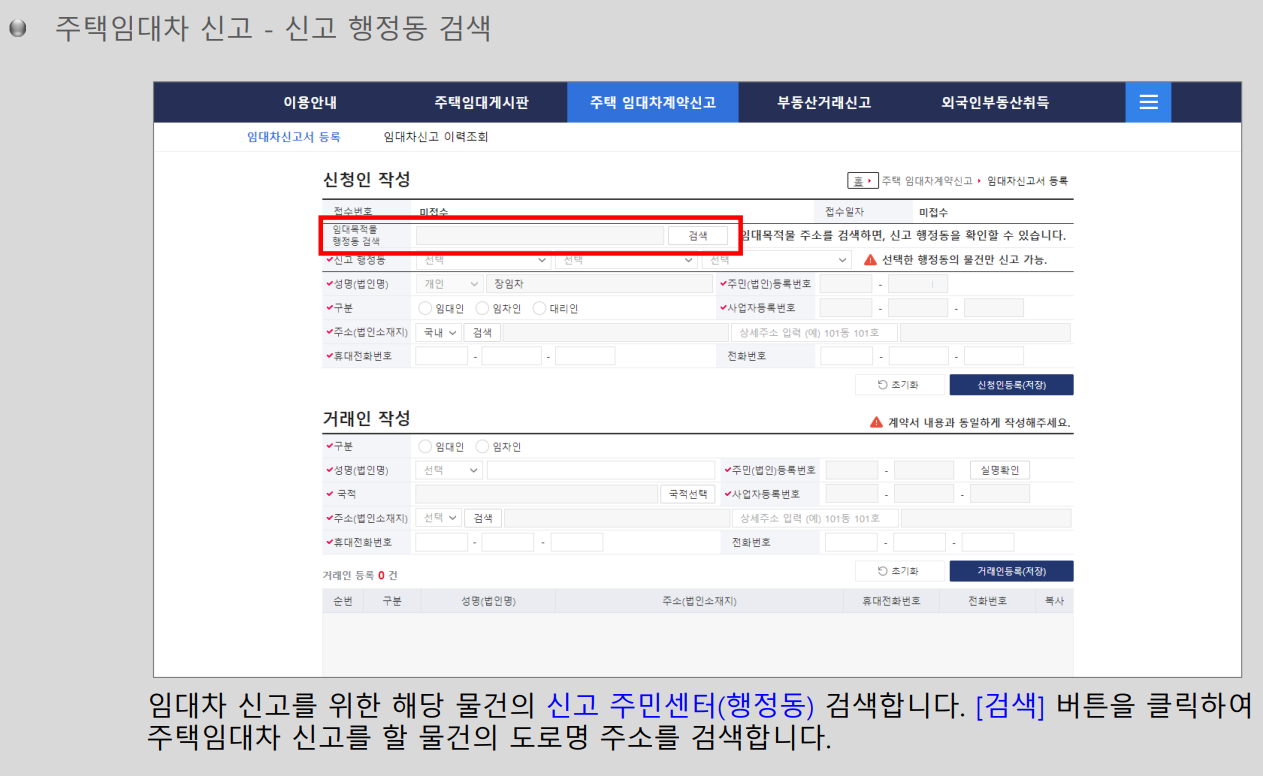 임대인과 임차인 모두 신고 의무가 있지만, 한쪽이 서명‧날인된 계약서를 제출하면 공동 신고로 인정됩니다.