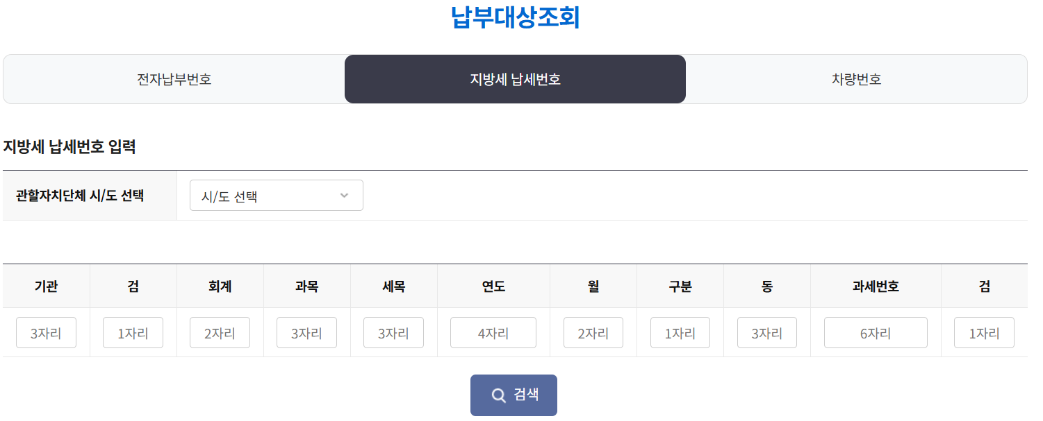 - 조회 방법 선택: 전자납부번호 또는 차량번호(자동차세 포함)로 조회