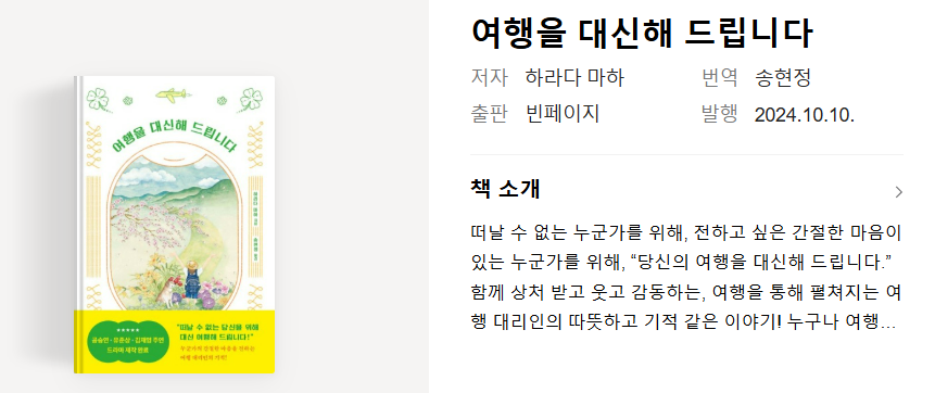 ‘여행을 대신해 드립니다’는 누군가의 여행을 대신 떠나면서 결국에는 자신을 위한 여행으로 돌아오는 이야기입니다.