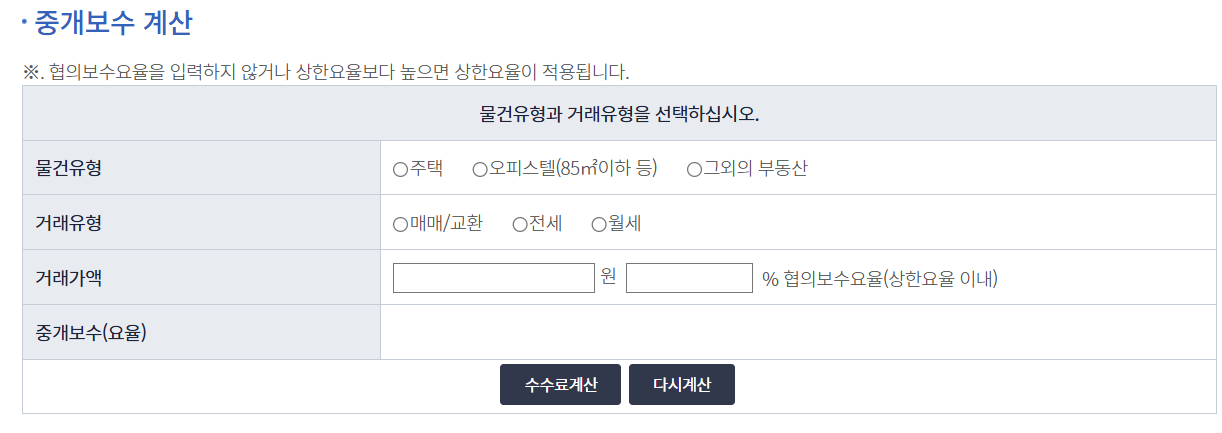 아래 계산기를 활용하여 중개보수 예상액을 계산해보세요!