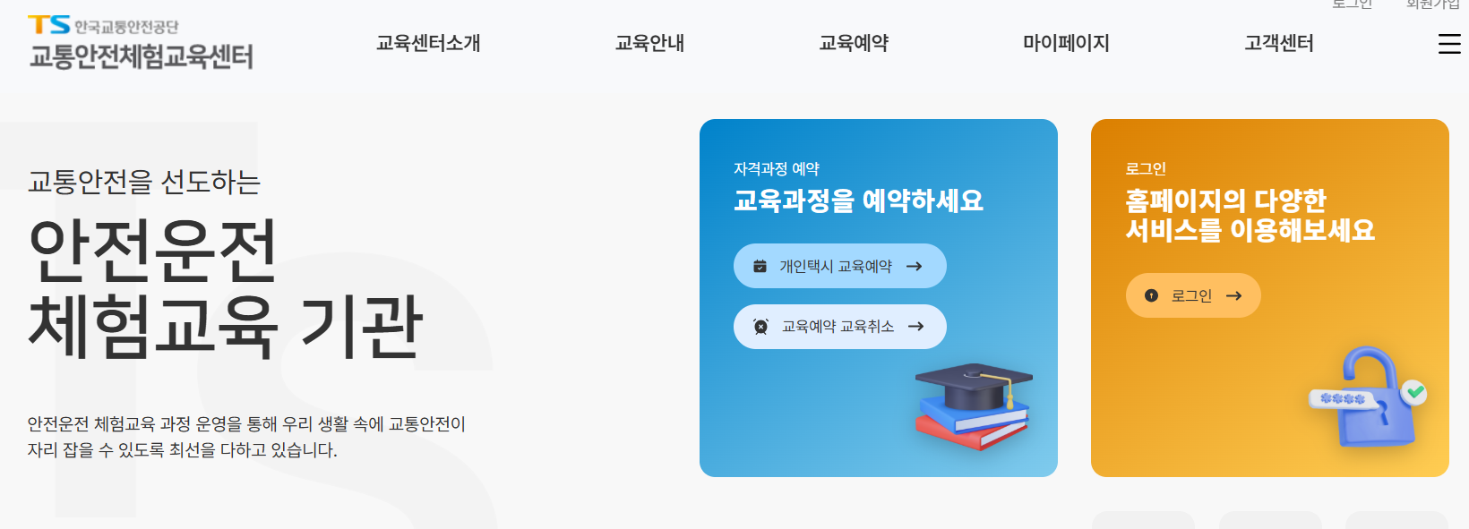 아래의 절차는 교통안전체험교육센터 공식 홈페이지 기준입니다.