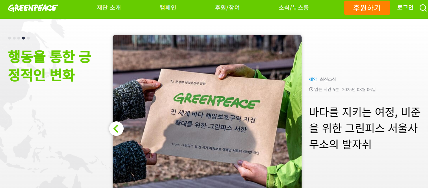 - 기후변화, 해양 보호, 삼림 보전, 탈원전 캠페인 등 활발